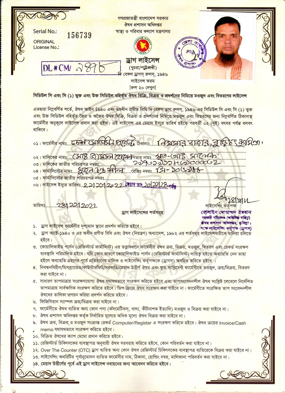 Proprietor Desh Enterprise & Desh Medicine 01914428496